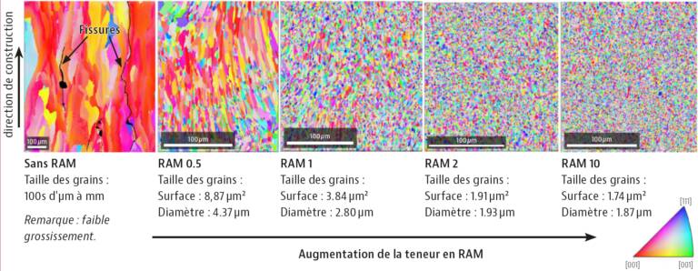 Figure 4. Exemple d’impact du procédé RAM sur un alliage d’aluminium sensible à la fissuration à chaud .