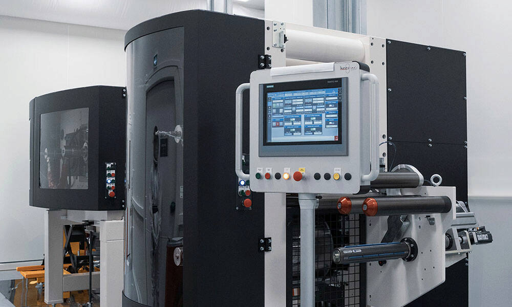 L'usine qui a permis la validation du concept se situe à Chassieu, près de Lyon, dans un environnement ambiant sec (salle anhydre) chez Ingecal, une société du groupe Dürr spécialisée dans la technologie de calandrage. Les calandres sont des machines équipées de rouleaux qui compriment les matériaux en une couche uniforme. Le revêtement à sec commence par la formation du film : une calandre horizontale transforme la poudre sèche en un film. On l’appelle « autoporteur » car il traverse la machine sans feuille de support. Lors de la deuxième étape, des calandres supplémentaires compriment le film selon l'épaisseur, la densité et la porosité souhaitées. Pour finir, un film est laminé de chaque côté de la feuille collectrice, ce qui produit l'électrode.
