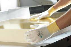Le gant tricoté HyFlex 11-435 combine une résistance à la coupure de niveau 5 avec une enduction en polyuréthane à base aqueuse. Le remplacement du solvant diméthylformamide (DMF) par de l'eau dans la fabrication des gants en polyuréthane augmente la sécurité non seulement des collaborateurs mais aussi des utilisateurs qui portent des gants quotidiennement dans le cadre de leur travail. L'utilisation d'eau en lieu et place de solvants chimiques est aussi plus écologique. De plus, le polyuréthane à base aqueuse présente l'avantage de ne pas s'infiltrer à l'intérieur du gant (phénomène de transpercement), au bénéfice du confort et de la souplesse globale. Sa formulation à base d'eau se traduit par des avantages directs pour le porteur, puisque les risques d'absorption de résidus chimiques issus des solvants sont nuls.
