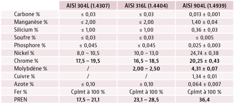 Tableau 1. Nuance et compositions des aciers inoxydables étudiés.