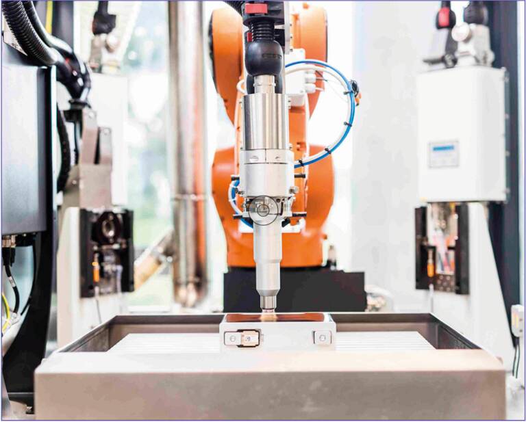 Figure 7. Le traitement plasma est réalisé, par exemple, dans une unité de traitement plasma (UTP) entièrement automatisée, qui peut être utilisée comme système autonome ou intégrée directement dans des lignes de production avec diverses options de manutention et de convoyage. © Plasmatreat GmbH