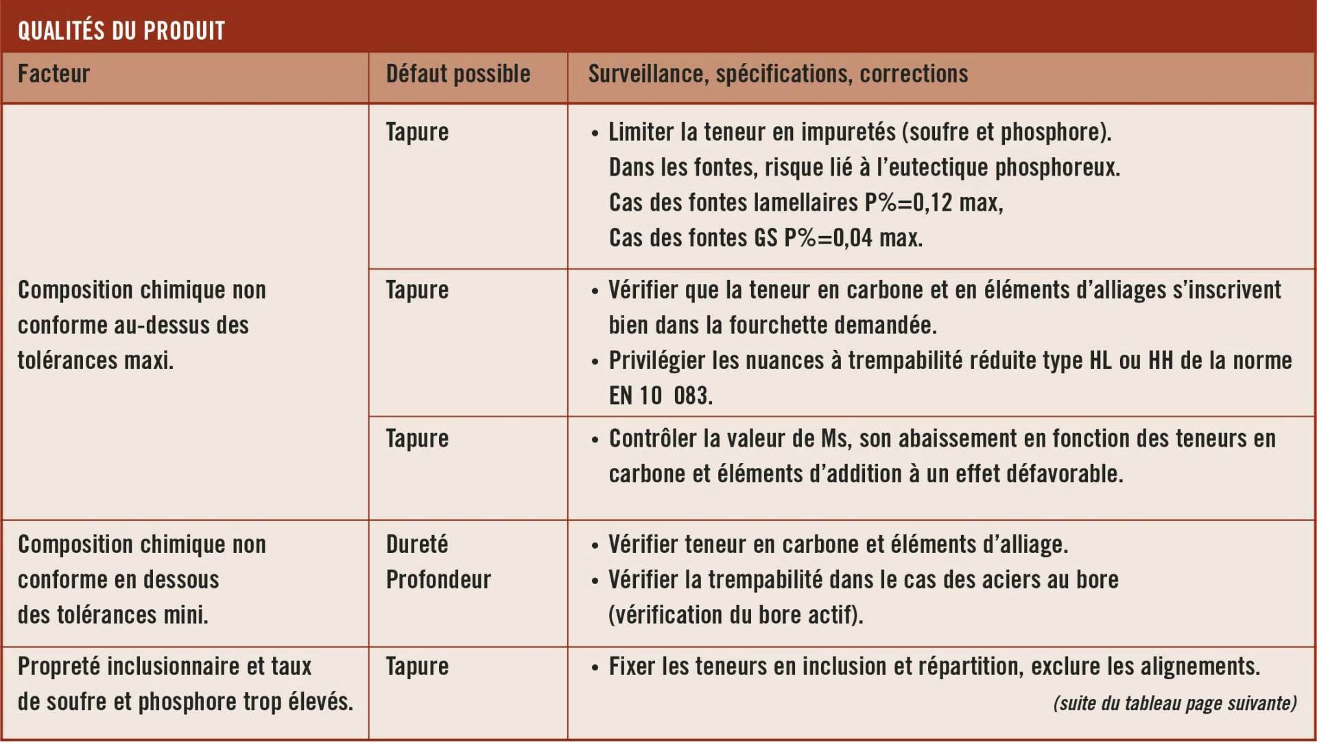 Défauts possibles lors d’un durcissement par trempe après chauffage par induction