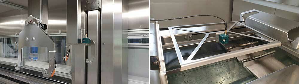 Le système de mesure est proposé en tant que solution fixe pour la surveillance continue et en version portable pour les contrôles occasionnels. Pour les mesures en continu, le microphone est fixé à l'automate de transport de l'installation. Celui-ci se déplace successivement vers les cuves de nettoyage et de rinçage équipées d'ultrasons, ce qui permet d'effectuer les mesures sans contact et de générer des résultats reproductibles. Les valeurs déterminées pour la fréquence et la puissance des ultrasons sont automatiquement transmises au logiciel de la solution de mesure, évaluées par des algorithmes, comparées aux valeurs de consigne préalablement enregistrées et mémorisées. En cas d'écart, le système émet un avertissement ou un message d'erreur.
